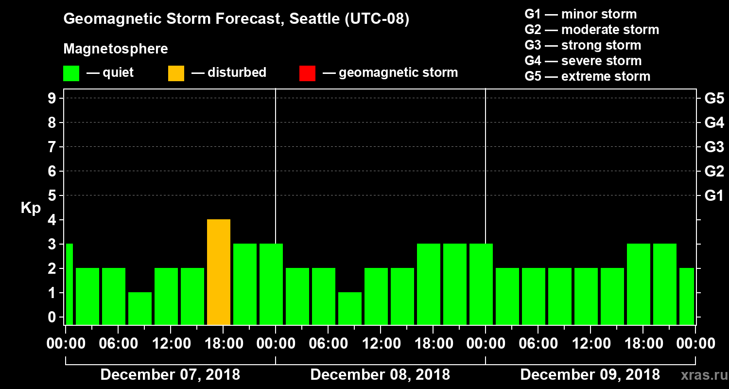 Geomagnetic storm forecast in Seattle for Dec 07, 2018