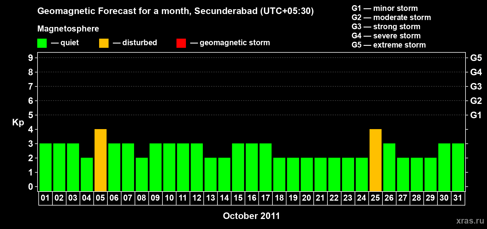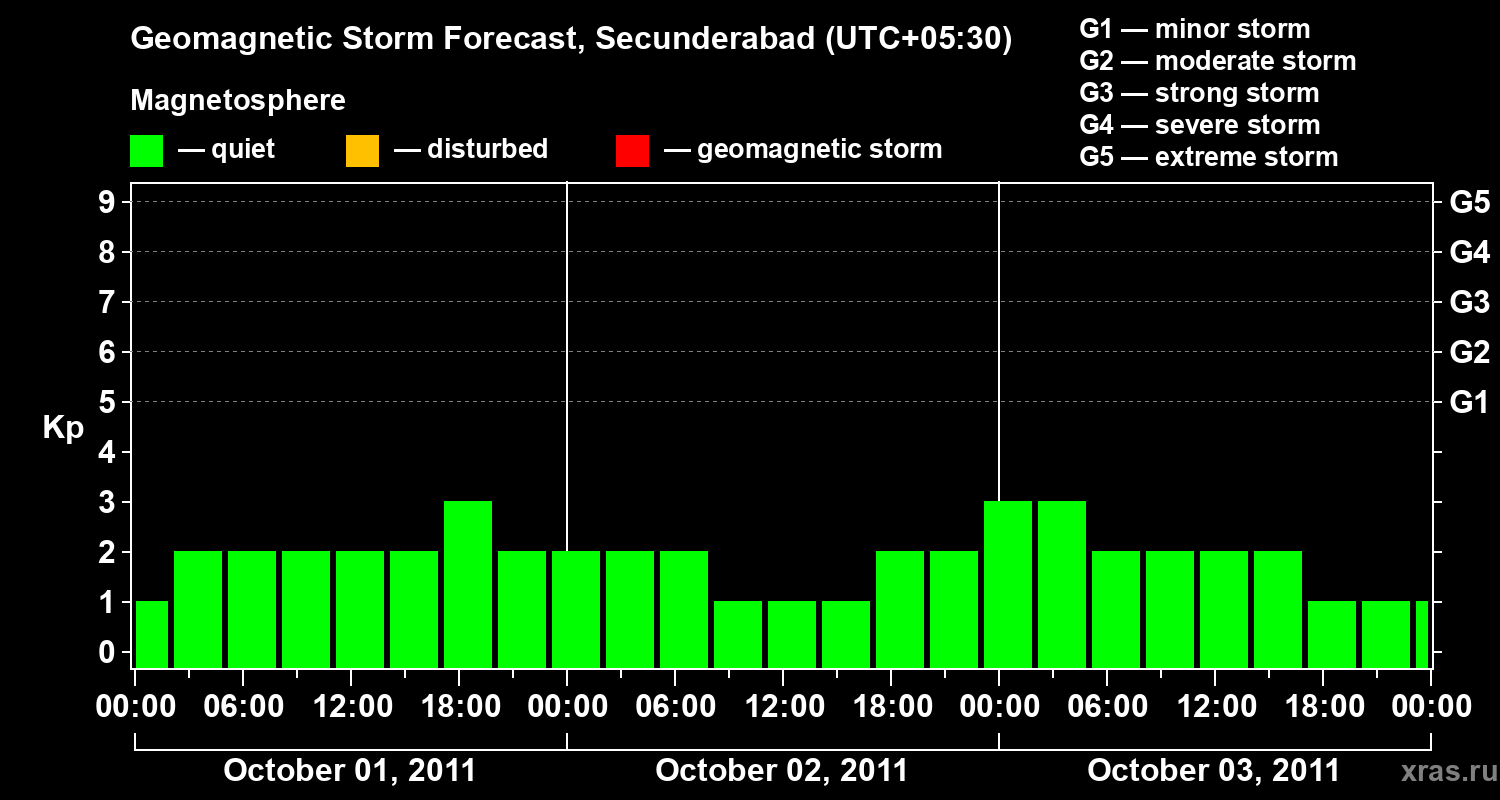 Geomagnetic storm forecast in Secunderabad for Oct 01, 2011