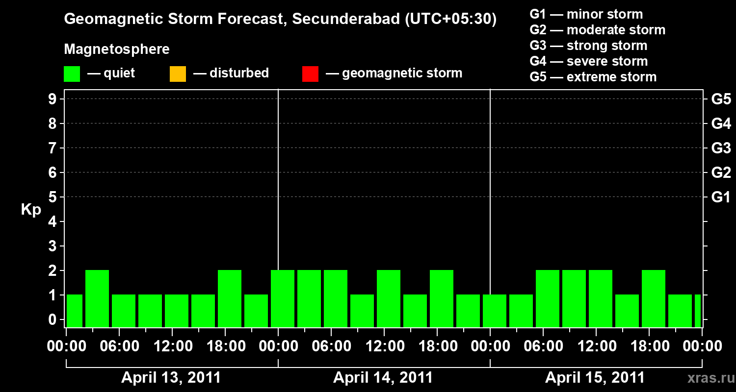 Geomagnetic storm forecast in Secunderabad for Apr 13, 2011