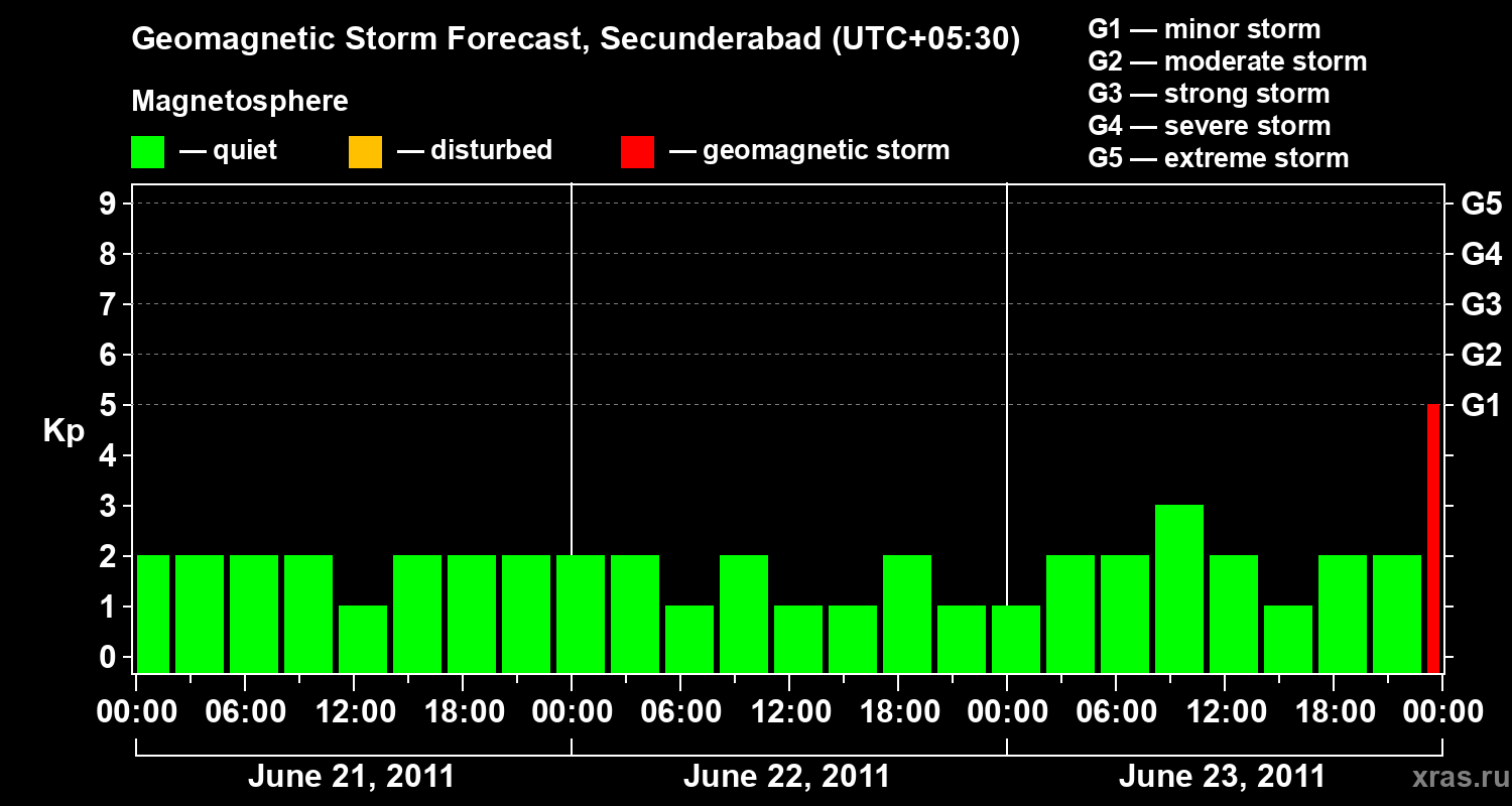 Geomagnetic storm forecast in Secunderabad for Jun 21, 2011