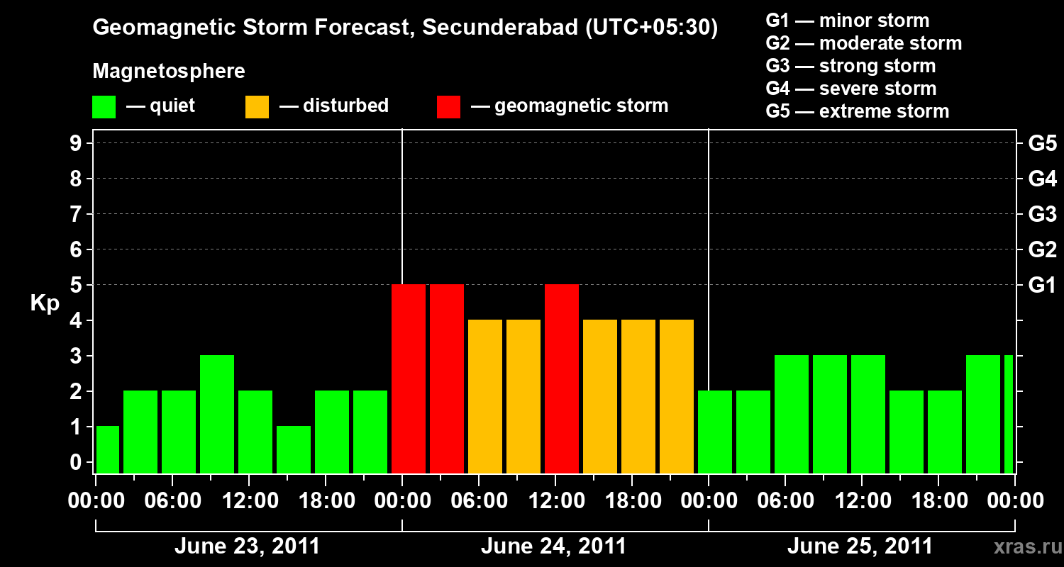 Geomagnetic storm forecast in Secunderabad for Jun 23, 2011
