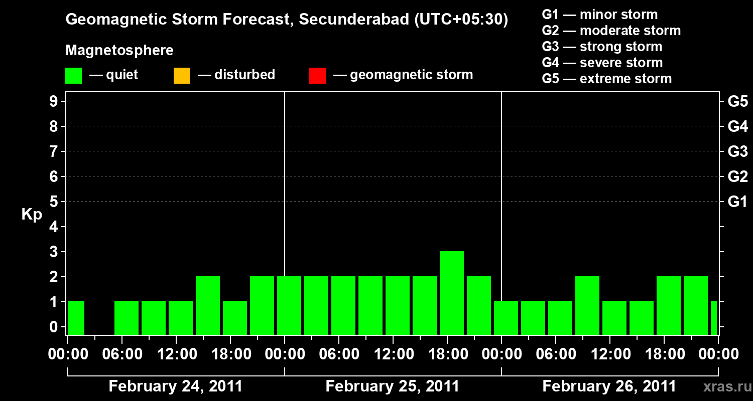 Geomagnetic storm forecast in Secunderabad for Feb 24, 2011