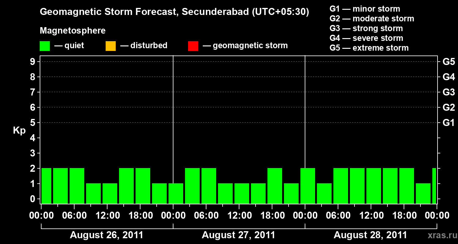 Geomagnetic storm forecast in Secunderabad for Aug 26, 2011