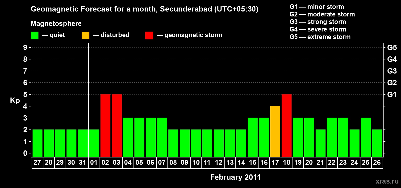 Geomagnetic storm forecast in Secunderabad for Jan 27, 2011
