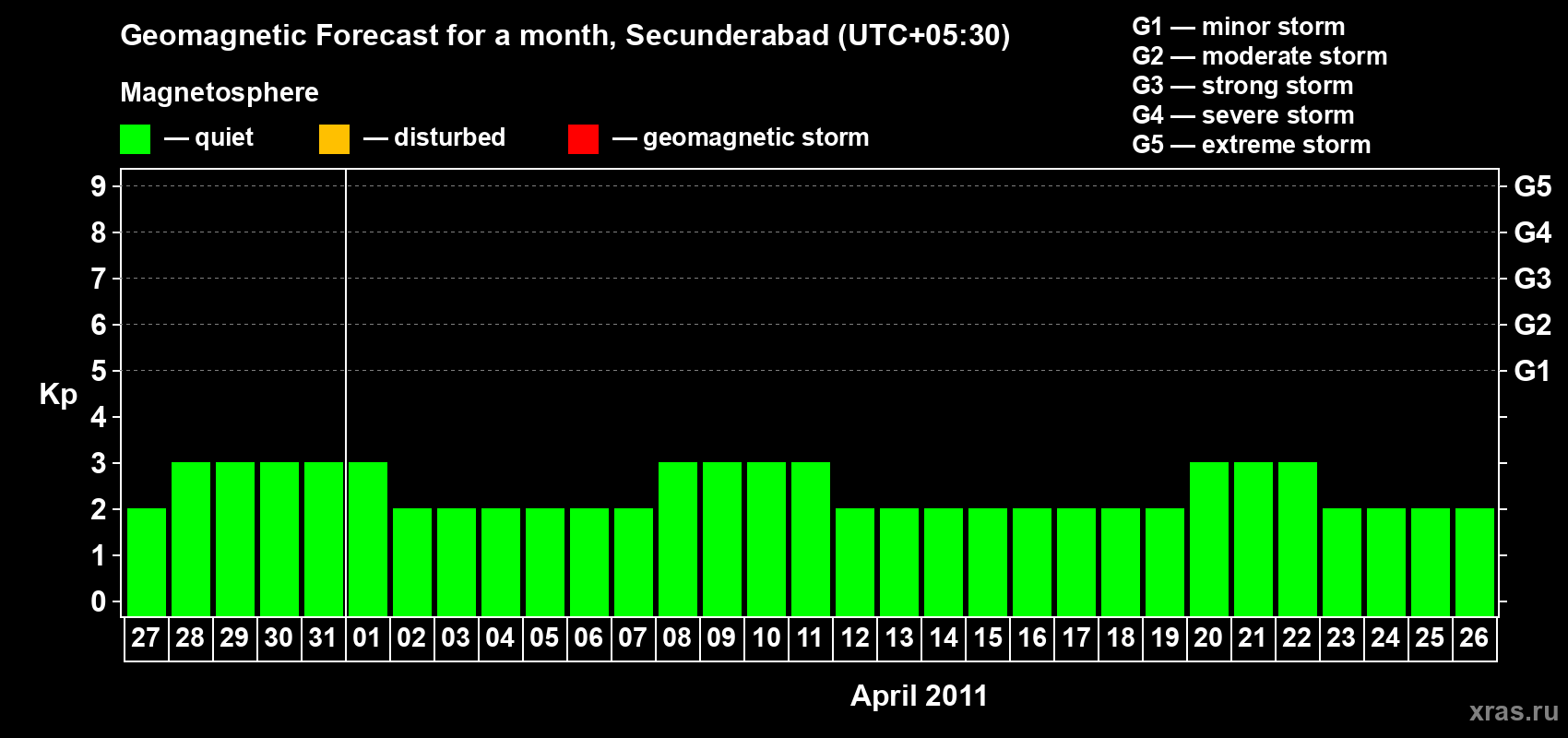 Geomagnetic storm forecast in Secunderabad for Mar 27, 2011