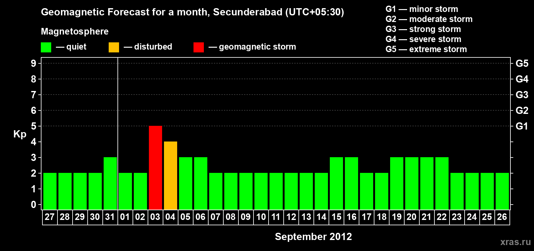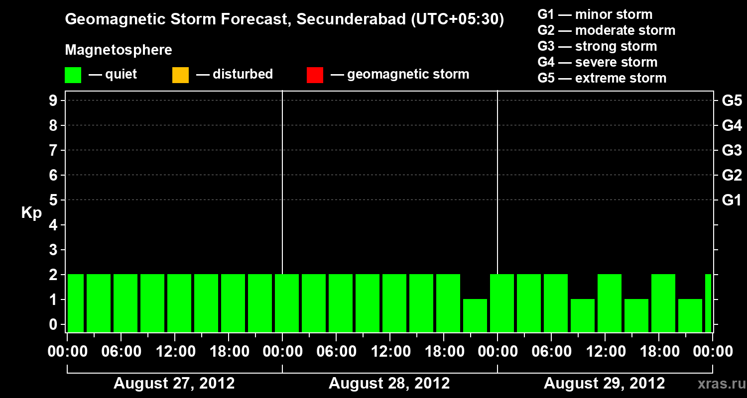 Geomagnetic storm forecast in Secunderabad for Aug 27, 2012