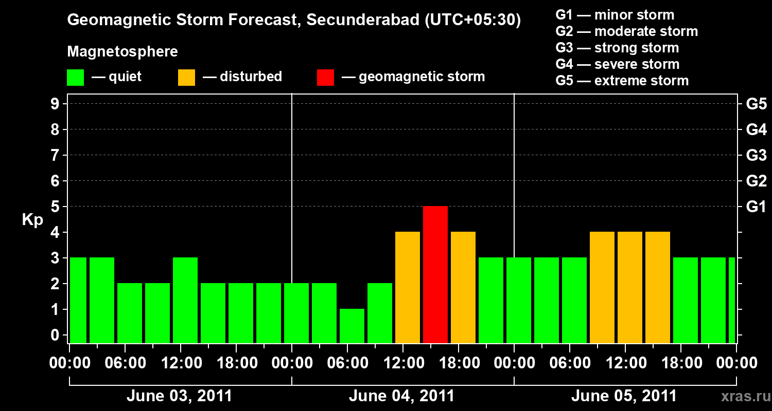 Geomagnetic storm forecast in Secunderabad for Jun 03, 2011