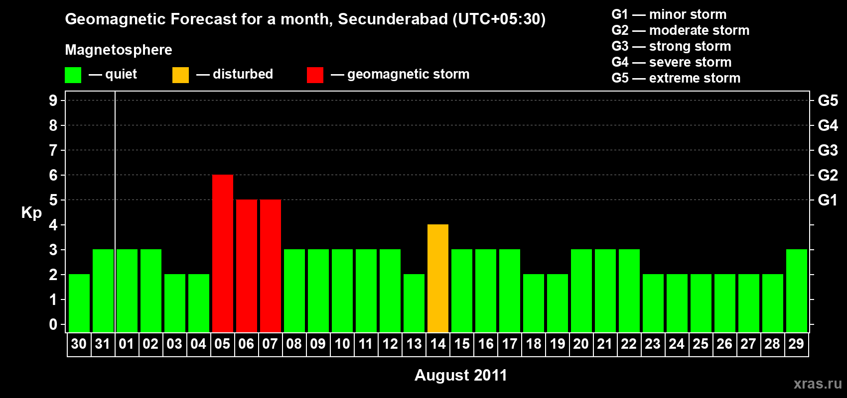 Geomagnetic storm forecast in Secunderabad for Jul 30, 2011