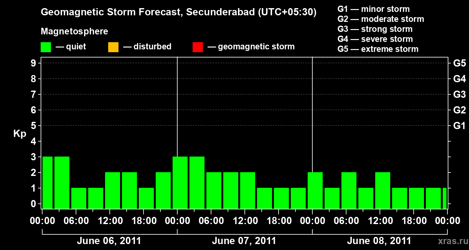 Geomagnetic storm forecast in Secunderabad for Jun 06, 2011