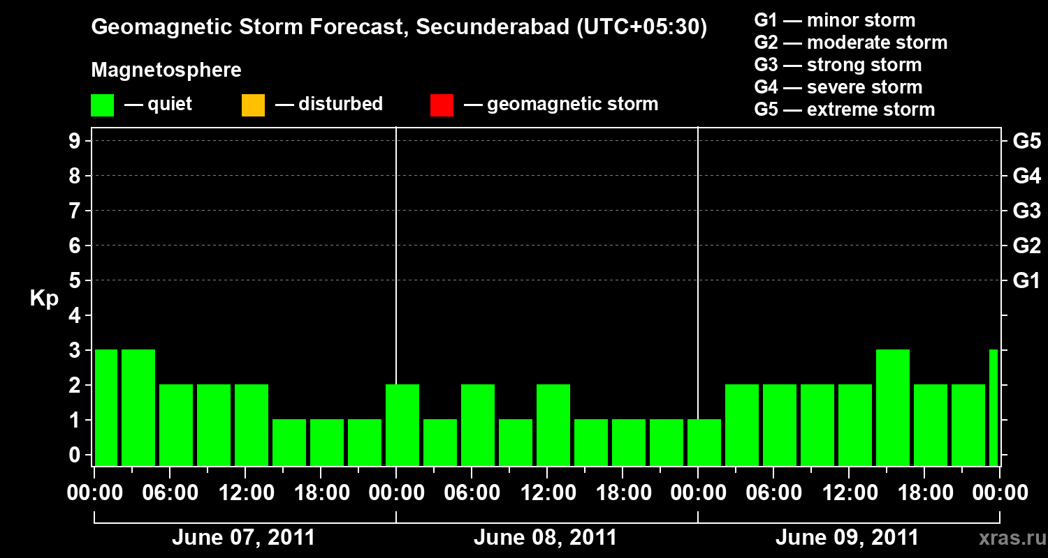 Geomagnetic storm forecast in Secunderabad for Jun 07, 2011