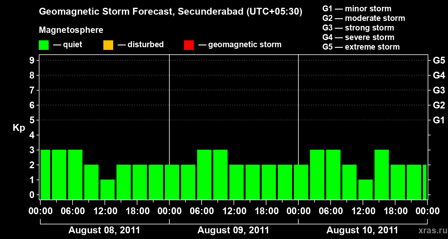 Geomagnetic storm forecast in Secunderabad for Aug 08, 2011