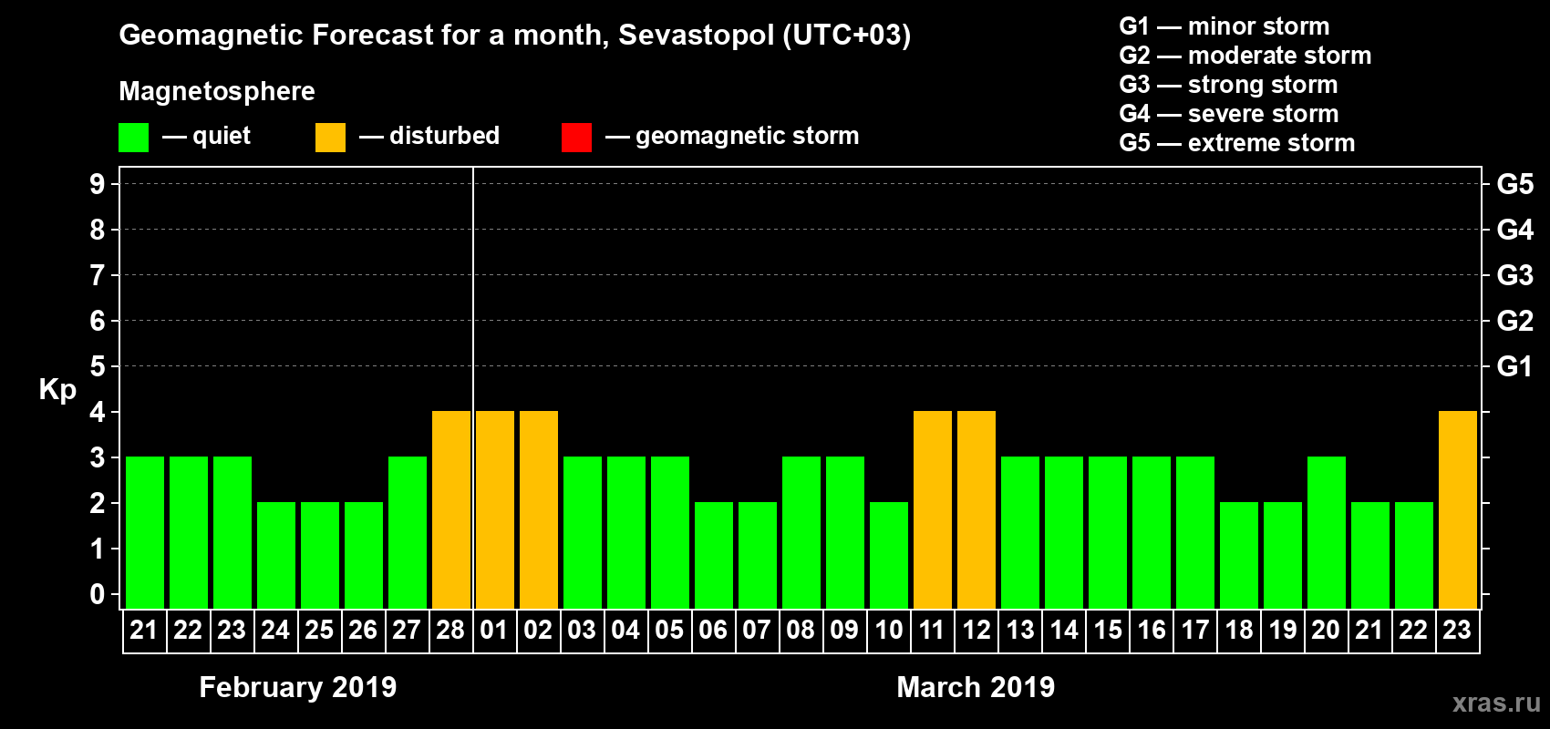 Geomagnetic storm forecast in Sevastopol for Feb 21, 2019