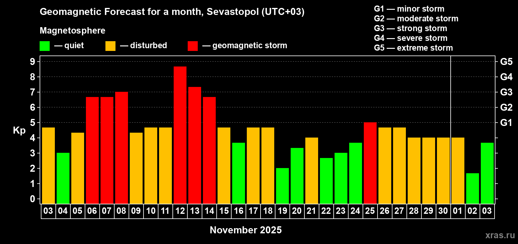 Geomagnetic storm forecast in Sevastopol for Nov 03, 2025