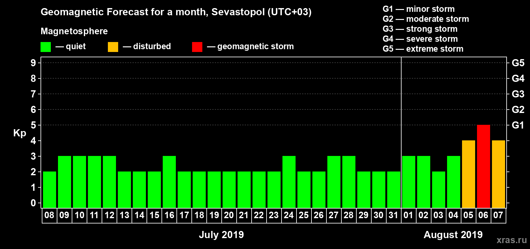 Geomagnetic storm forecast in Sevastopol for Jul 08, 2019