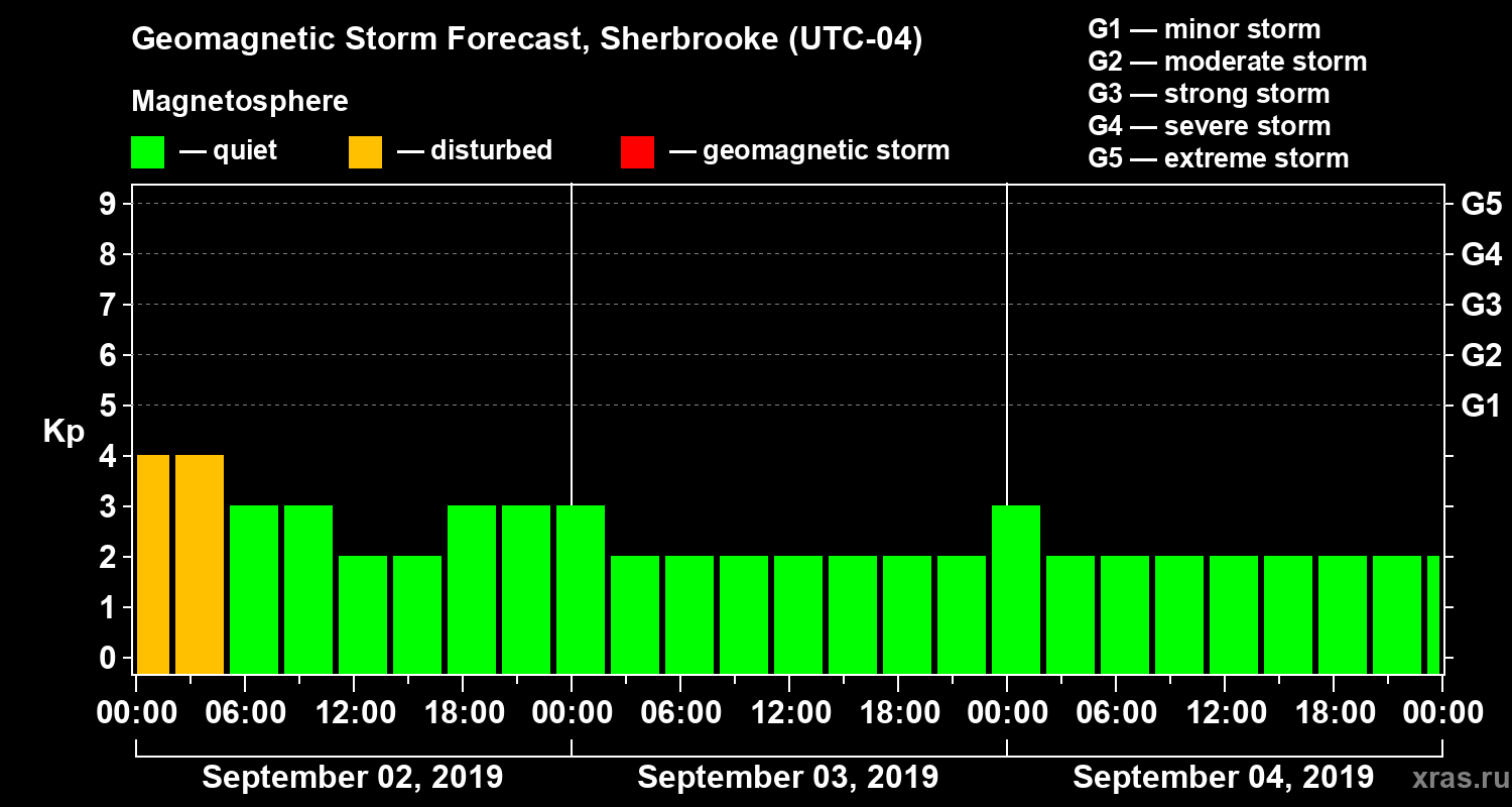Geomagnetic storm forecast in Sherbrooke for Sep 02, 2019
