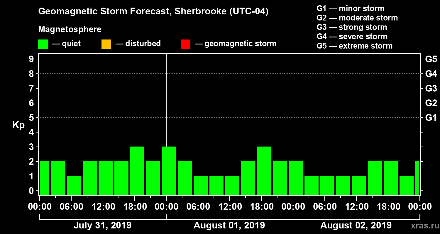 Geomagnetic storm forecast in Sherbrooke for Jul 31, 2019