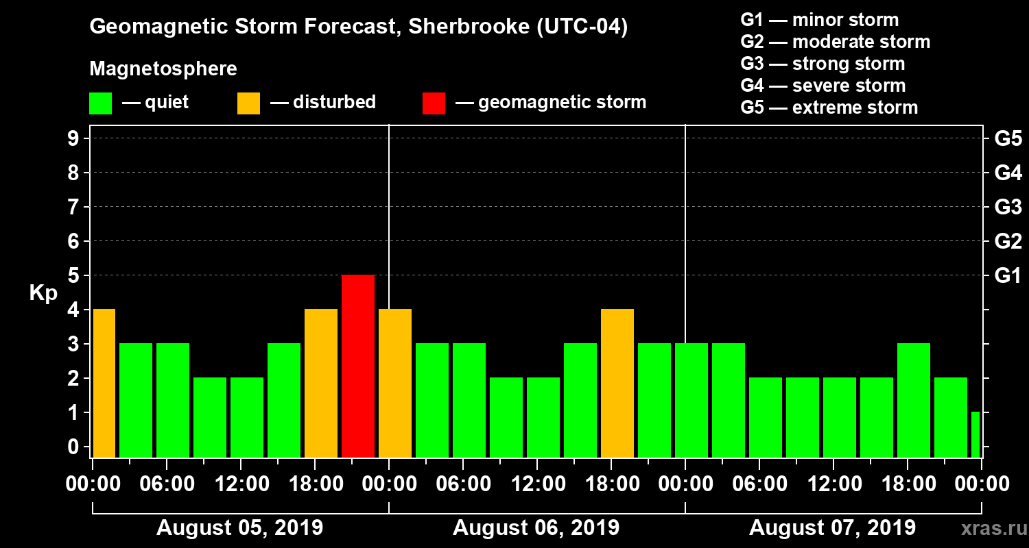 Geomagnetic storm forecast in Sherbrooke for Aug 05, 2019