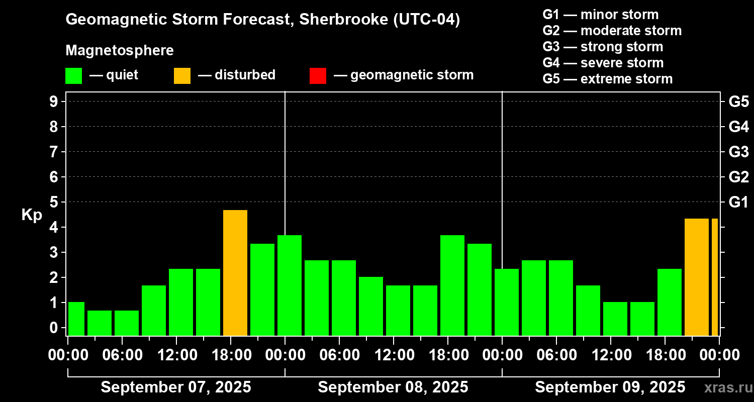 Geomagnetic storm forecast in Sherbrooke for Sep 07, 2025