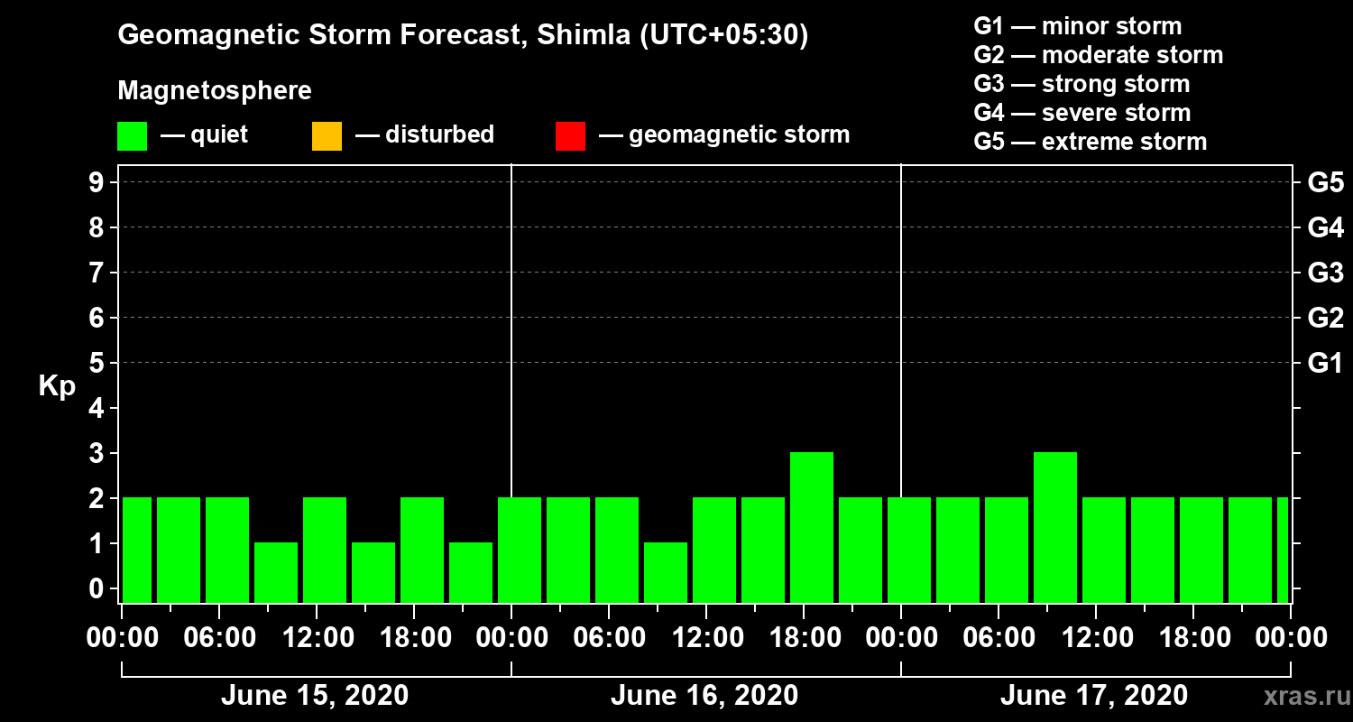 Geomagnetic storm forecast in Shimla for Jun 15, 2020
