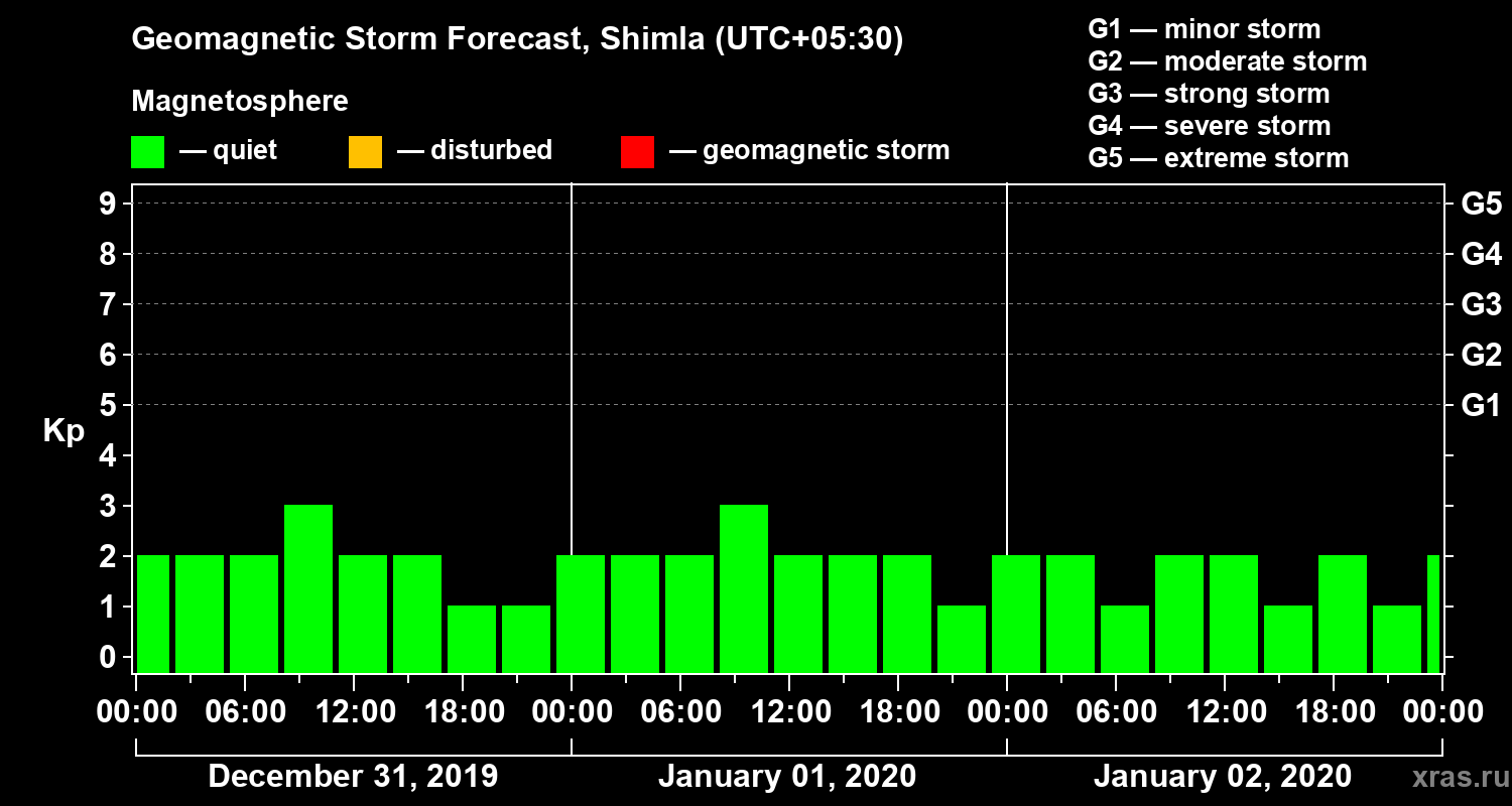 Geomagnetic storm forecast in Shimla for Dec 31, 2019