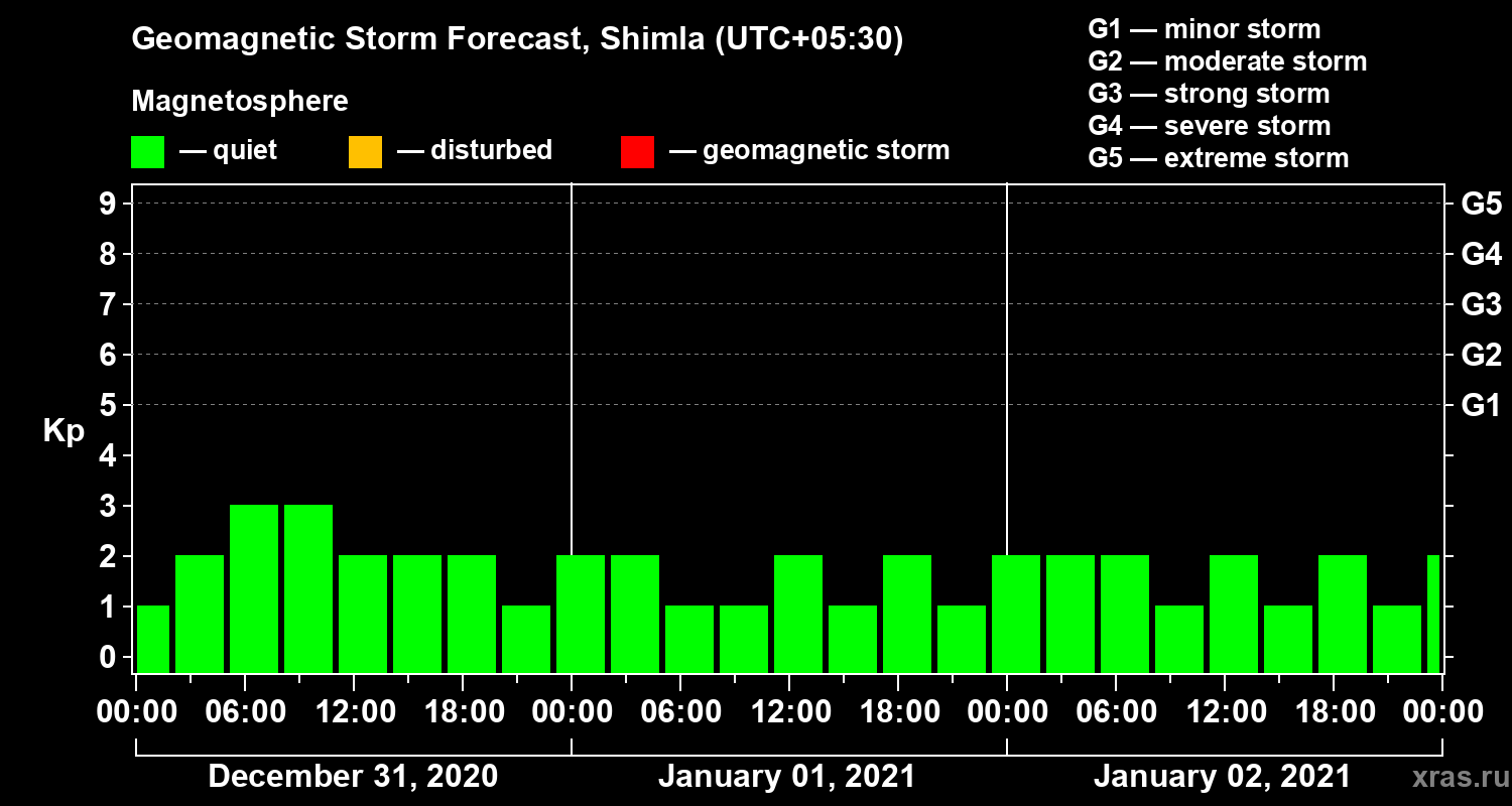 Geomagnetic storm forecast in Shimla for Dec 31, 2020
