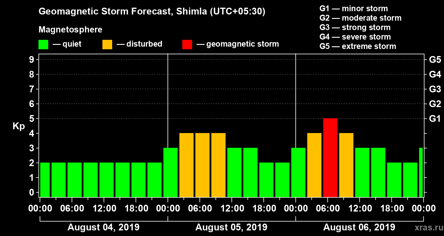 Geomagnetic activity forecast in Shimla — Aug 04, 2019