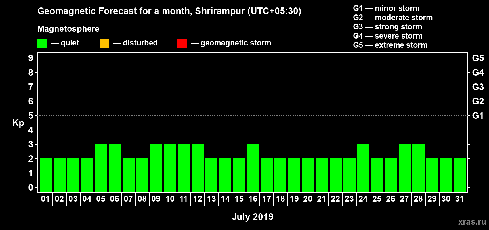 Geomagnetic storm forecast in Shrirampur for Jul 01, 2019
