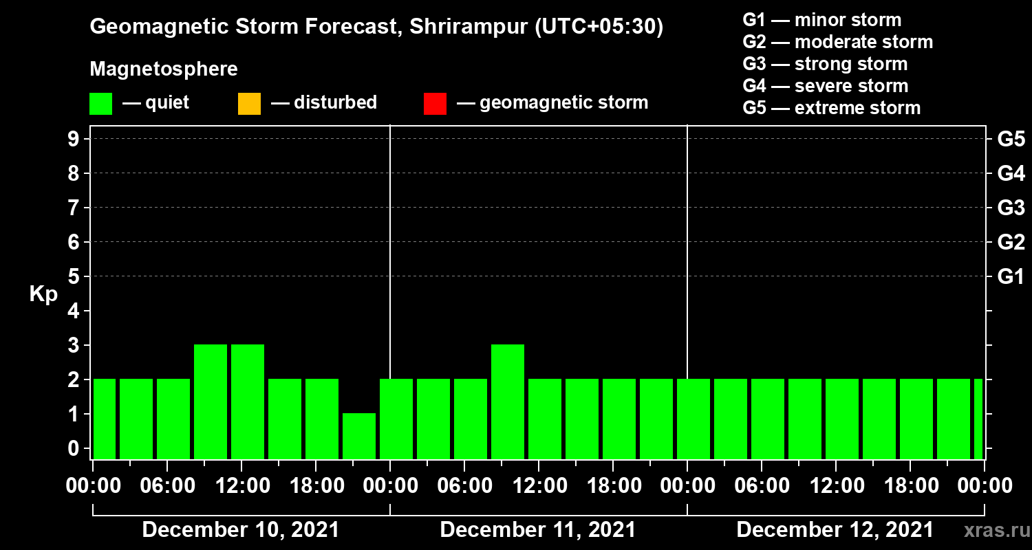 Geomagnetic activity forecast in Shrirampur — Dec 10, 2021
