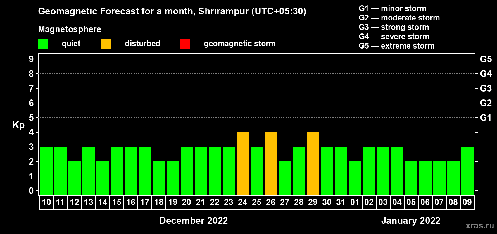 Geomagnetic storm forecast in Shrirampur for Dec 10, 2021