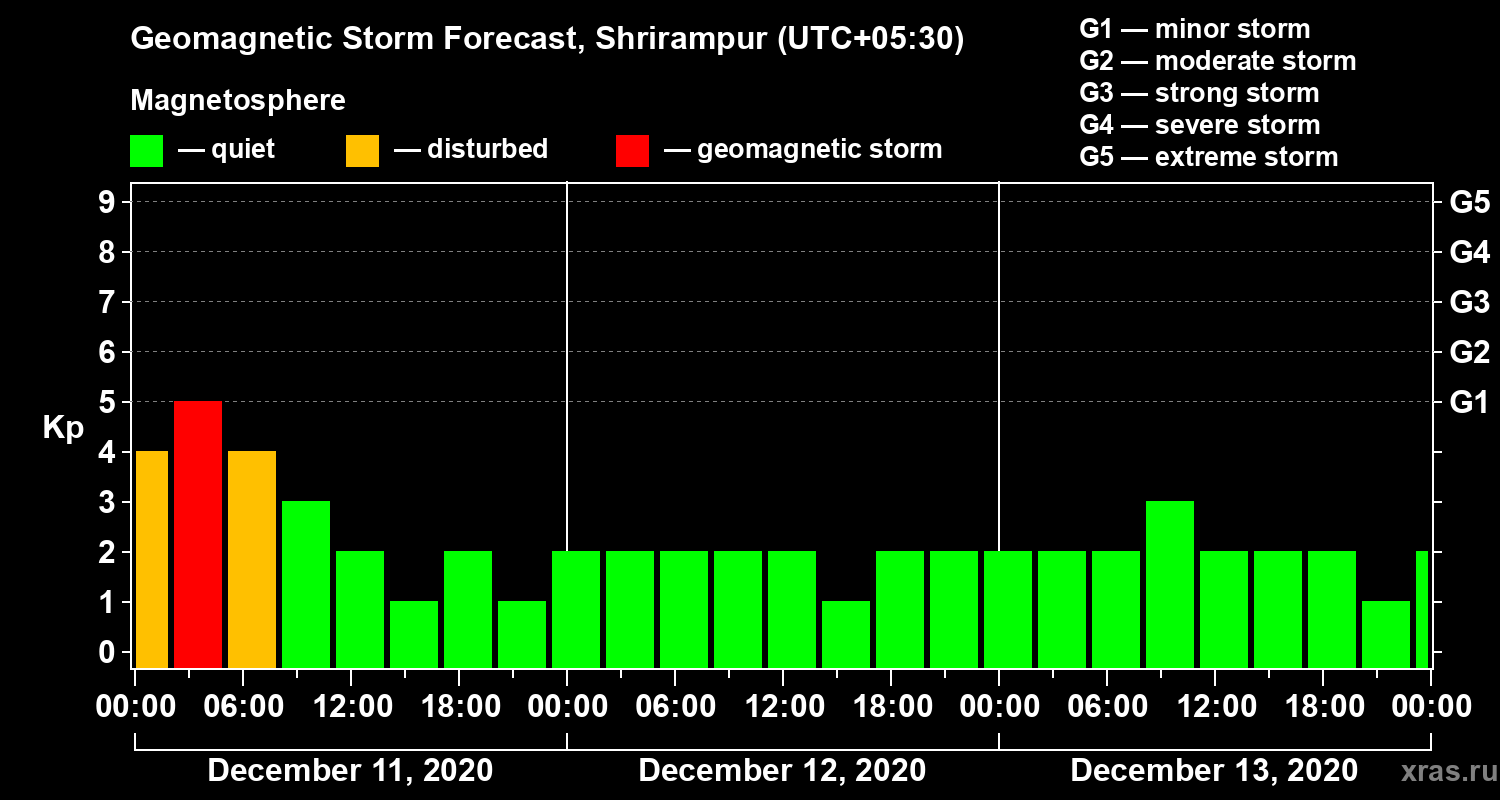 Geomagnetic activity forecast in Shrirampur — Dec 11, 2020