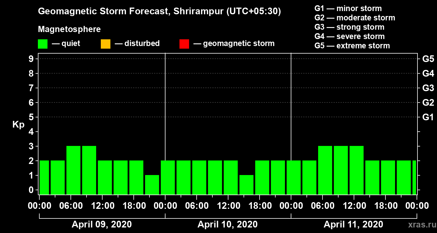 Geomagnetic storm forecast in Shrirampur for Apr 09, 2020