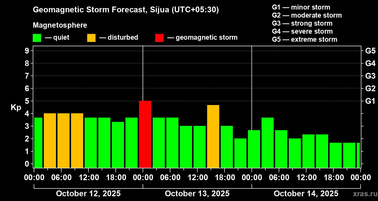 Geomagnetic storm forecast in Sijua for Oct 12, 2025