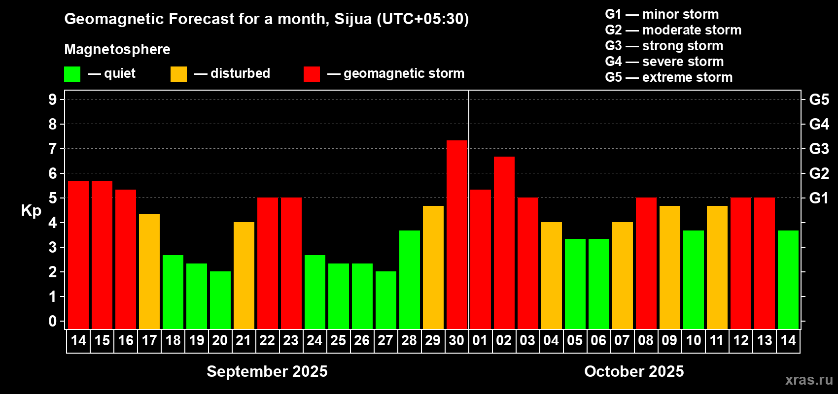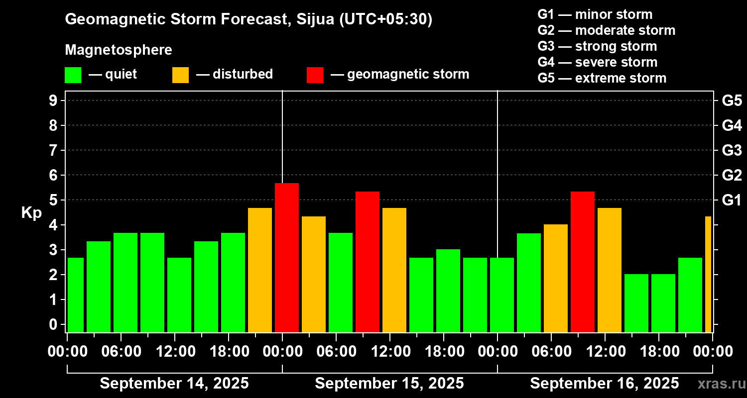 Geomagnetic storm forecast in Sijua for Sep 14, 2025