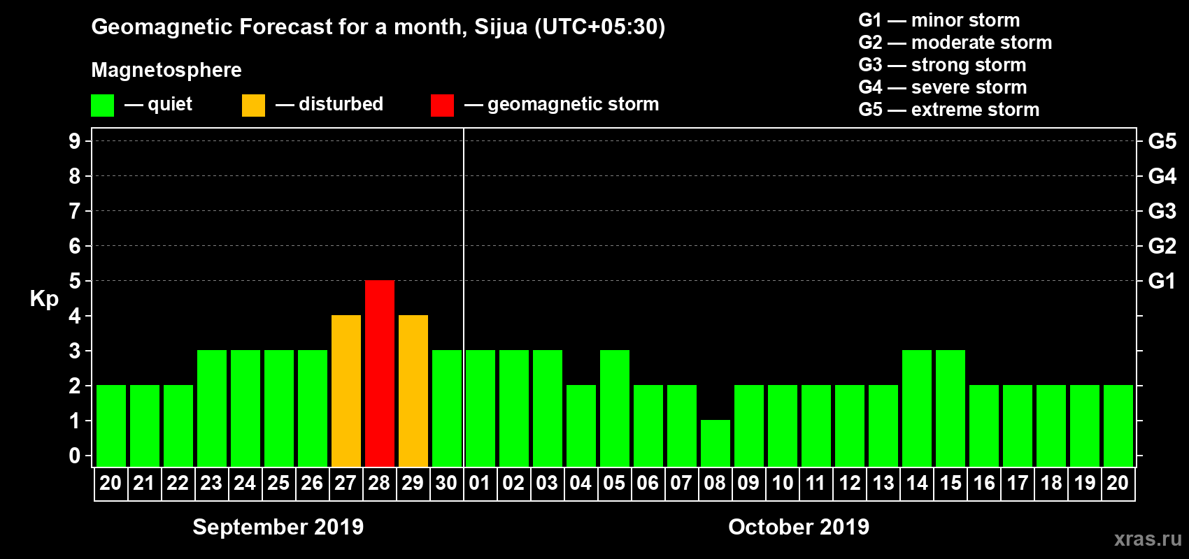 Geomagnetic storm forecast in Sijua for Sep 20, 2019