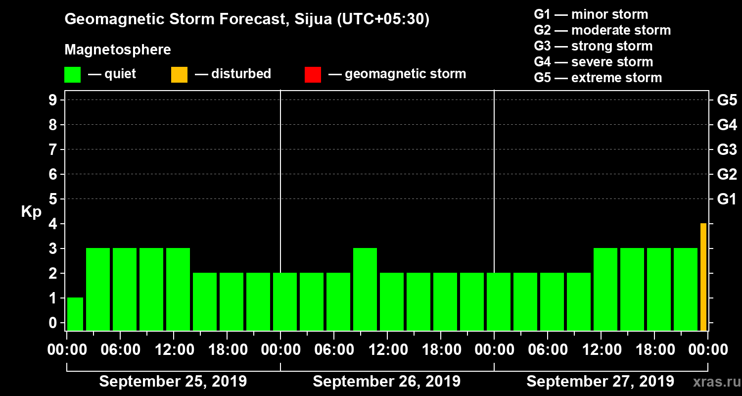 Geomagnetic storm forecast in Sijua for Sep 25, 2019