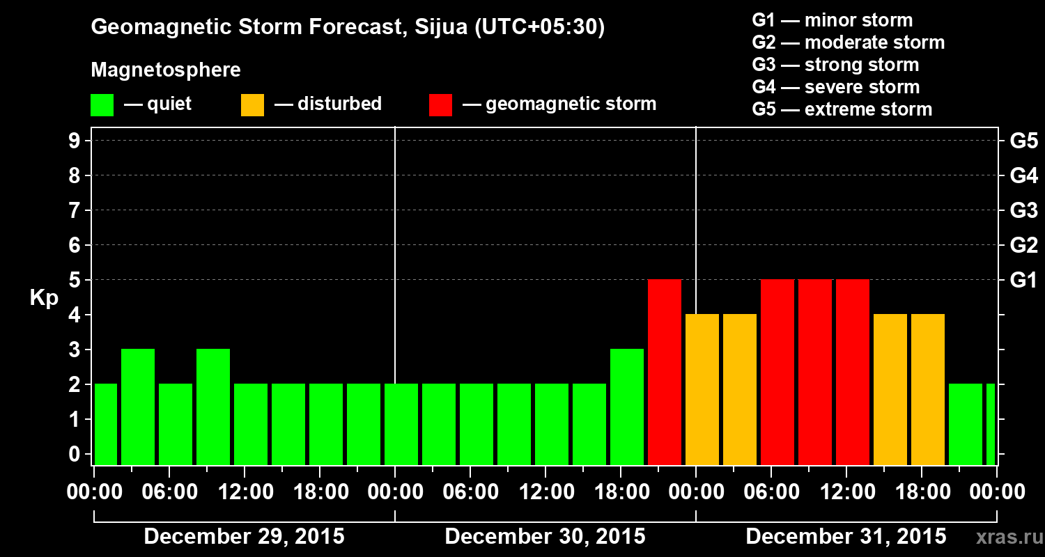 Geomagnetic storm forecast in Sijua for Dec 29, 2015