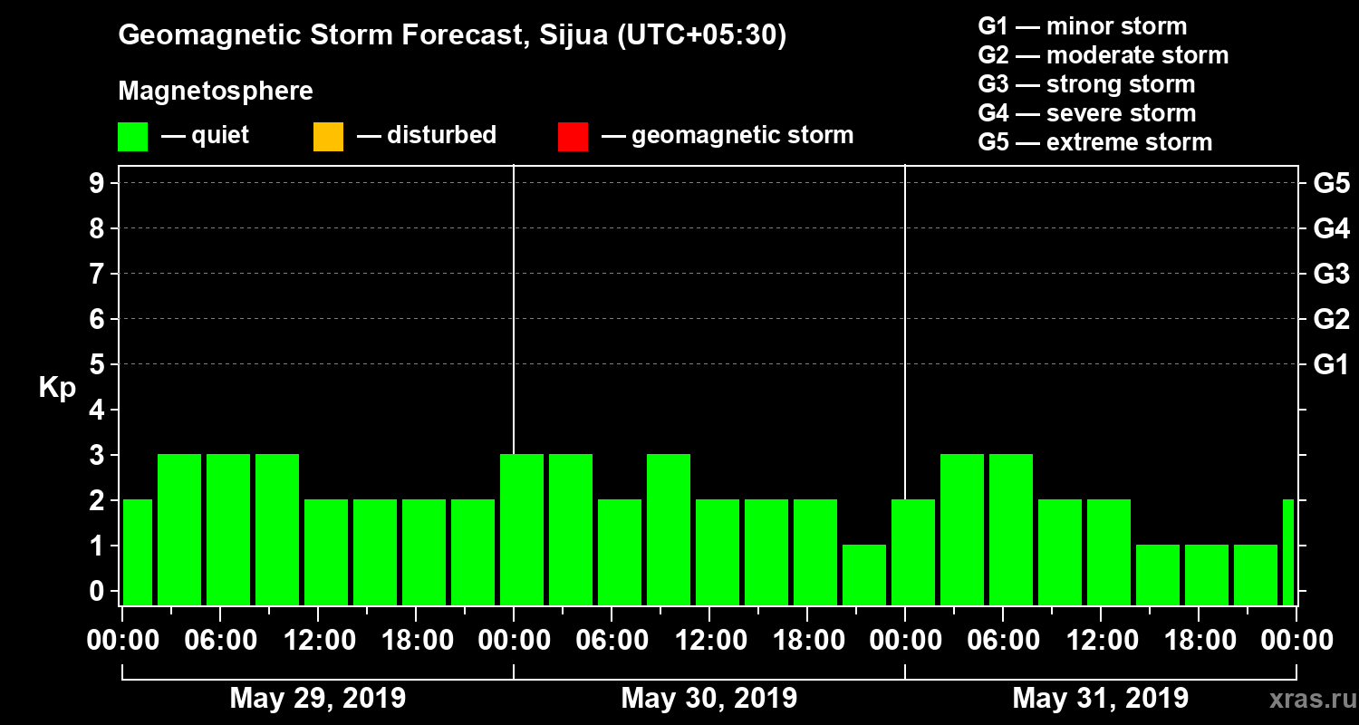 Geomagnetic storm forecast in Sijua for May 29, 2019