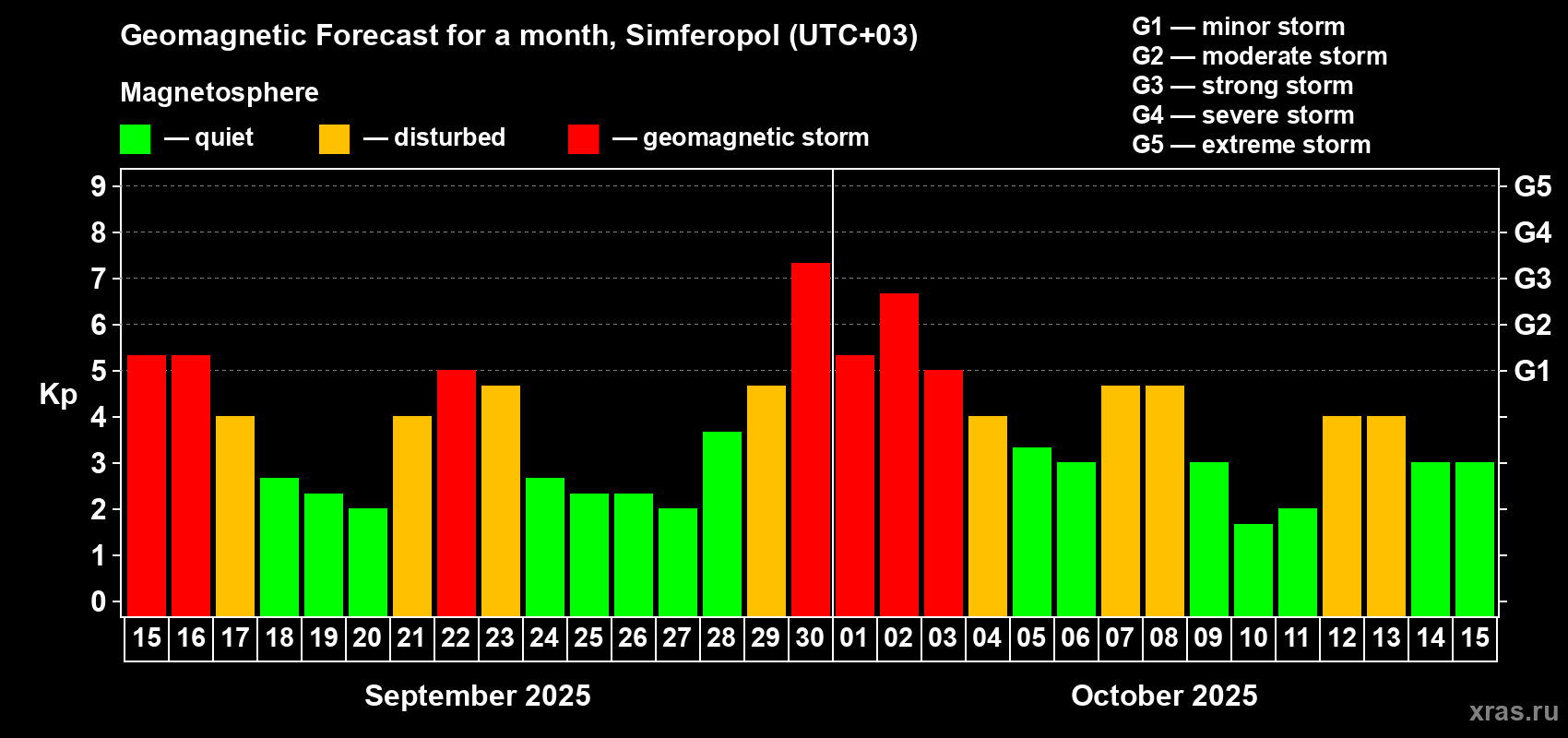 Geomagnetic storm forecast in Simferopol for Sep 15, 2025