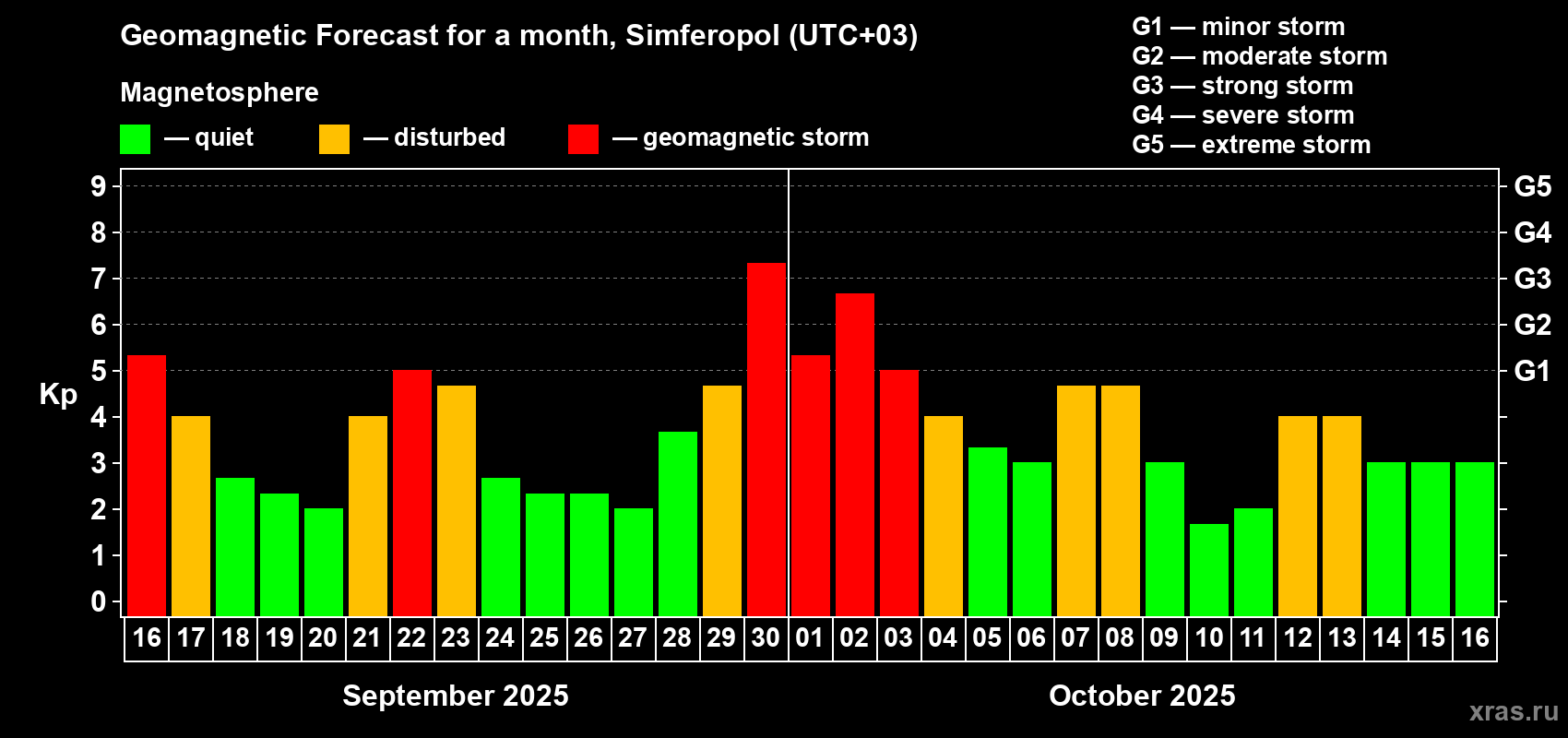 Geomagnetic storm forecast in Simferopol for Sep 16, 2025