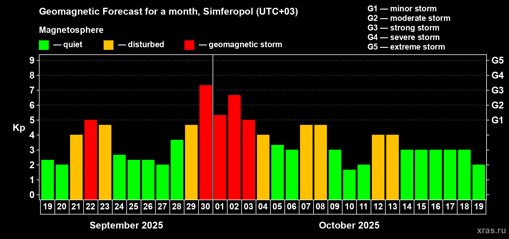 Geomagnetic storm forecast in Simferopol for Sep 19, 2025