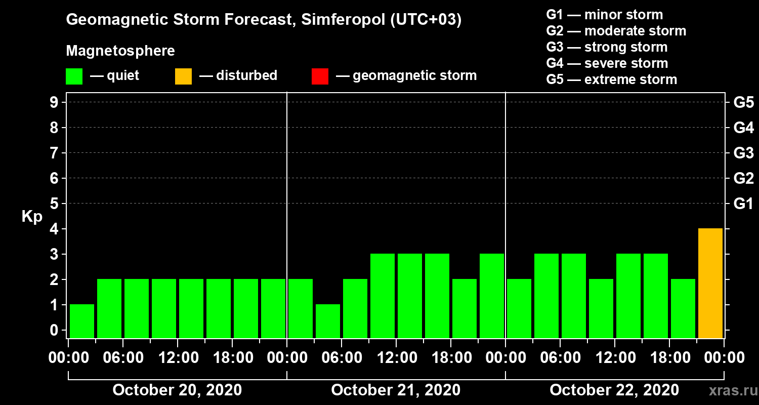 Geomagnetic storm forecast in Simferopol for Oct 20, 2020