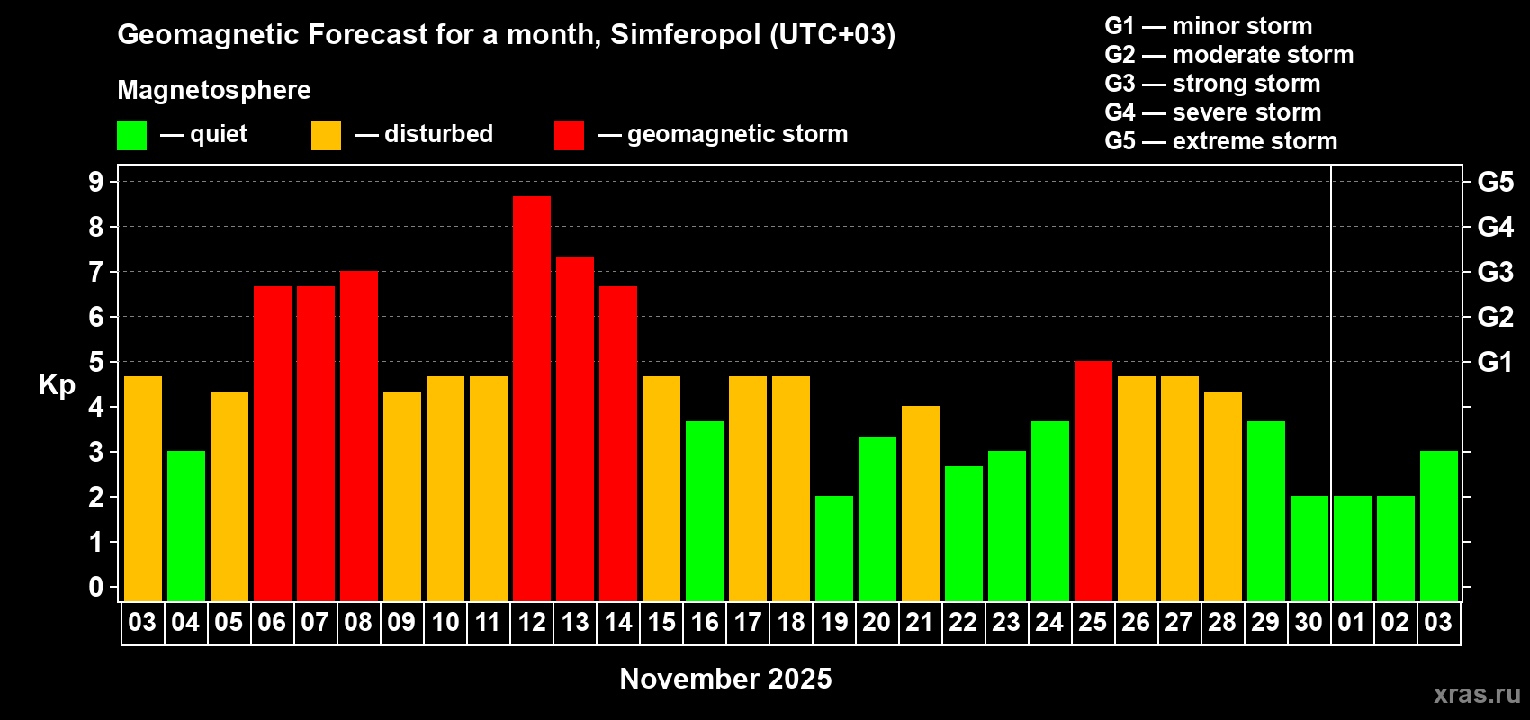 Geomagnetic storm forecast in Simferopol for Nov 03, 2025