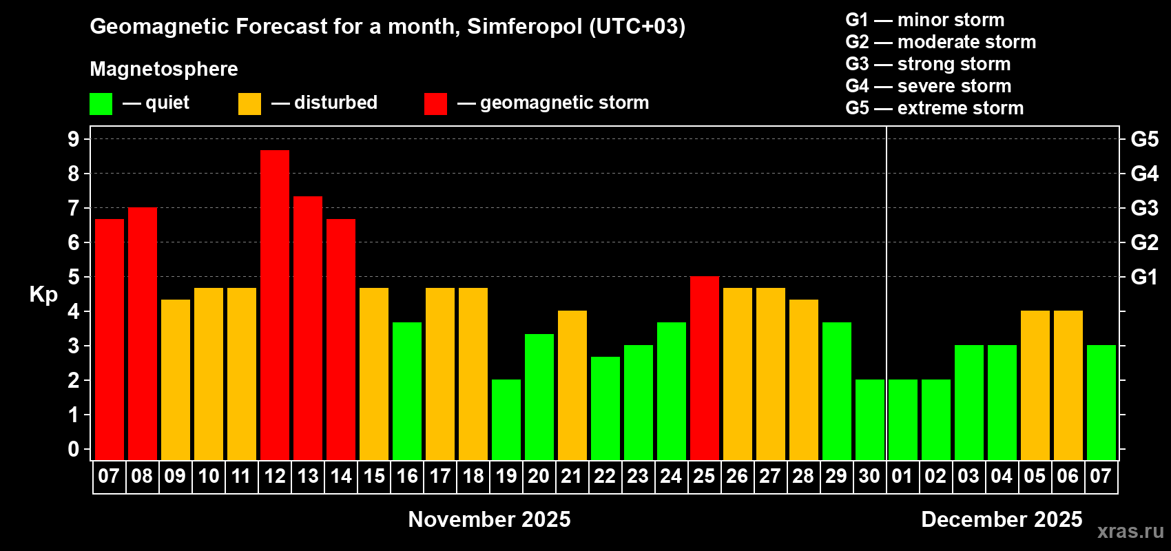 Geomagnetic storm forecast in Simferopol for Nov 07, 2025
