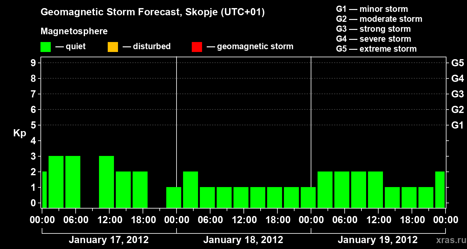 Geomagnetic storm forecast in Skopje for Jan 17, 2012