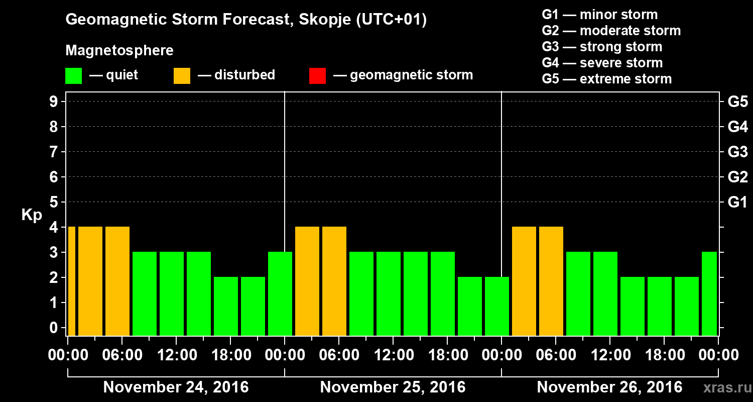 Geomagnetic storm forecast in Skopje for Nov 24, 2016