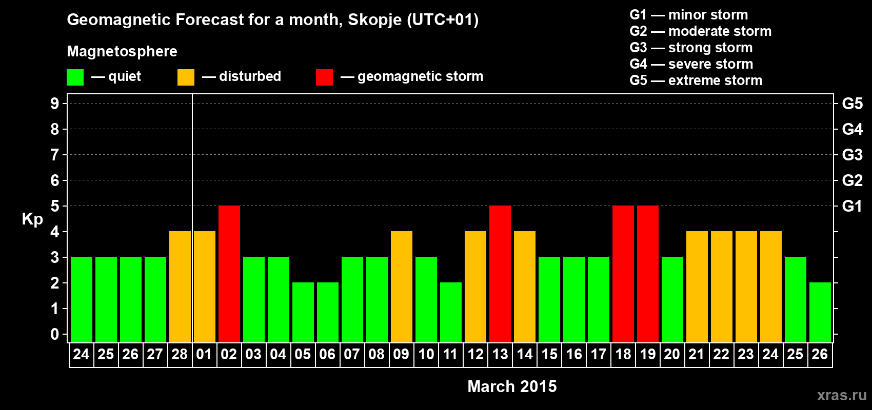 Geomagnetic storm forecast in Skopje for Feb 24, 2015