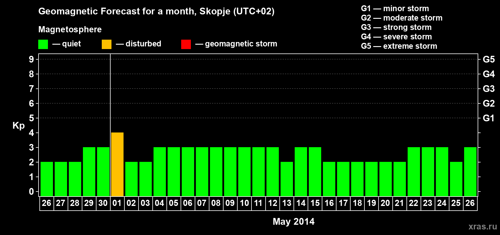 Geomagnetic storm forecast in Skopje for Apr 26, 2014