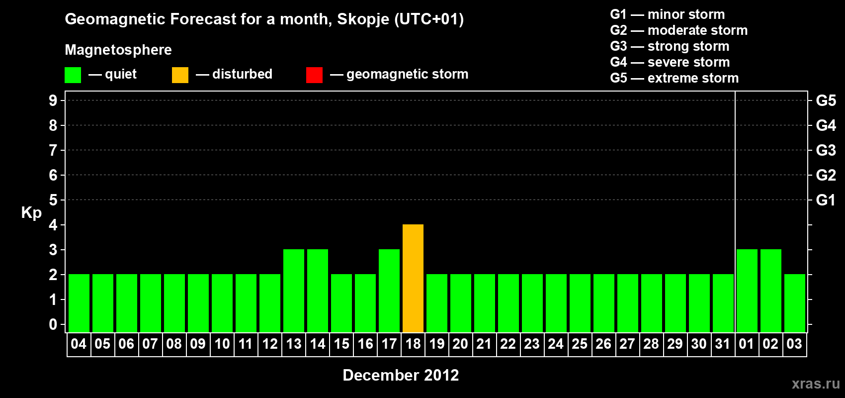 Geomagnetic storm forecast in Skopje for Dec 04, 2012