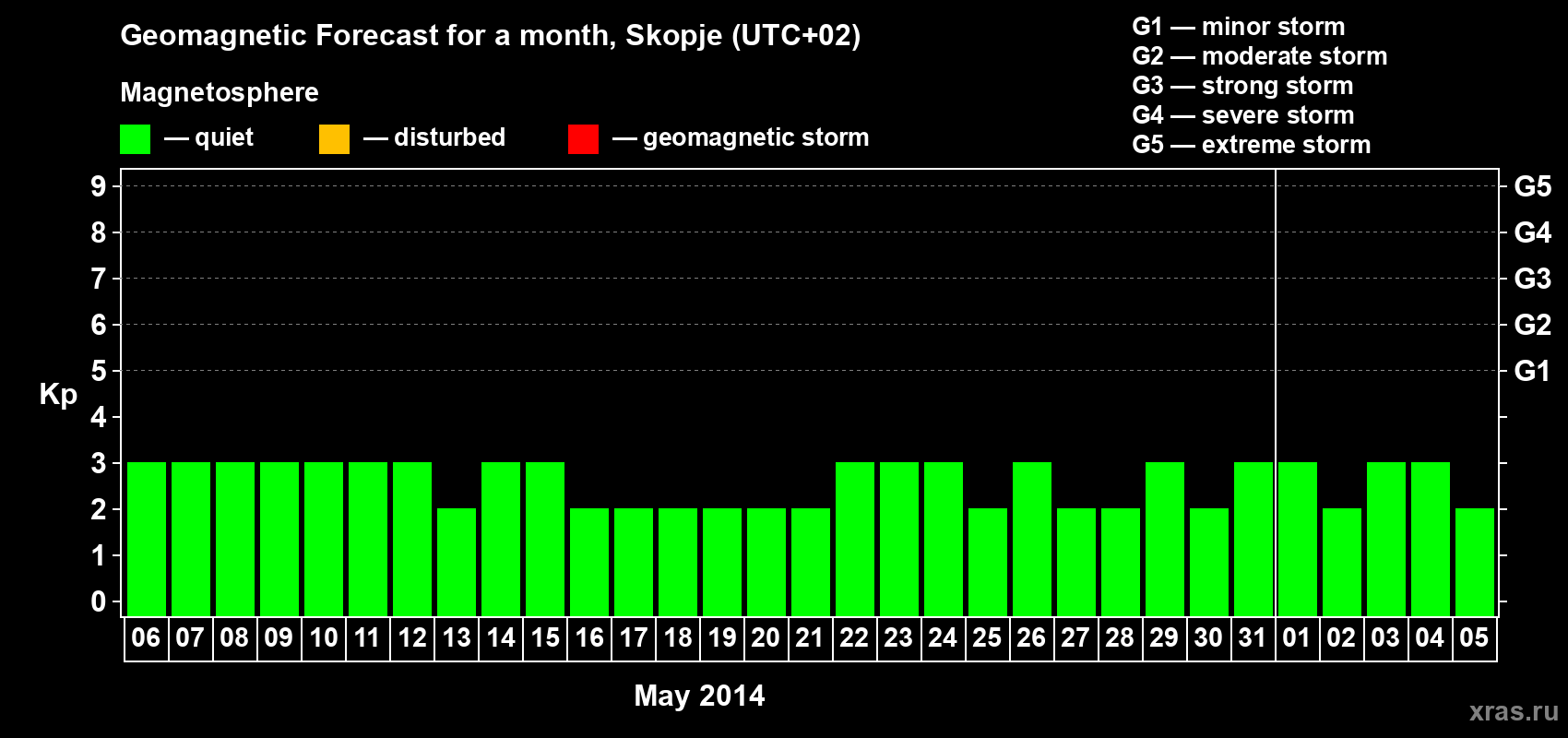 Geomagnetic storm forecast in Skopje for May 06, 2014