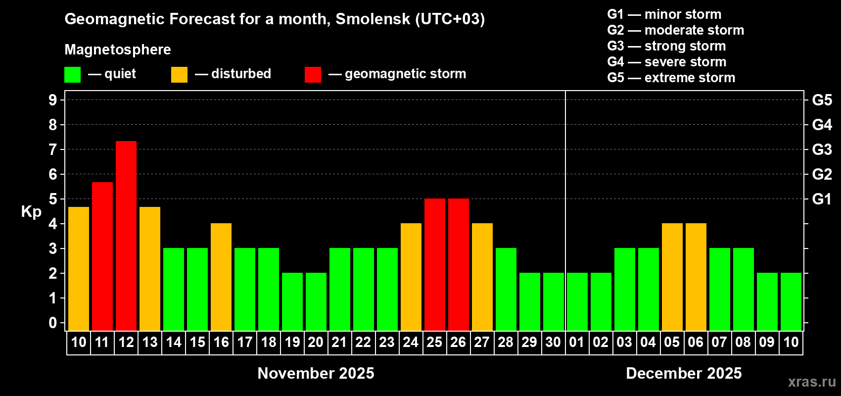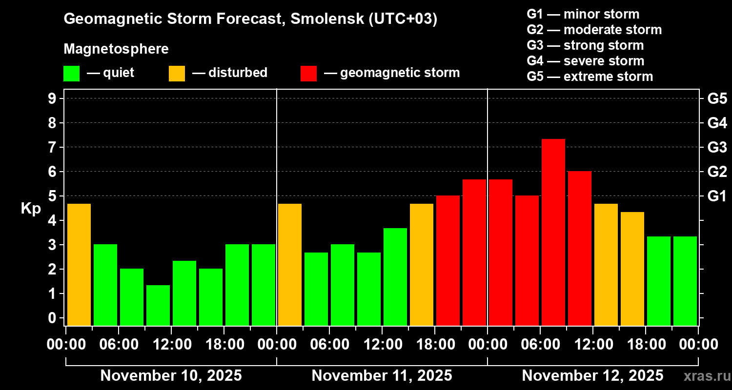 Geomagnetic storm forecast in Smolensk for Nov 10, 2025